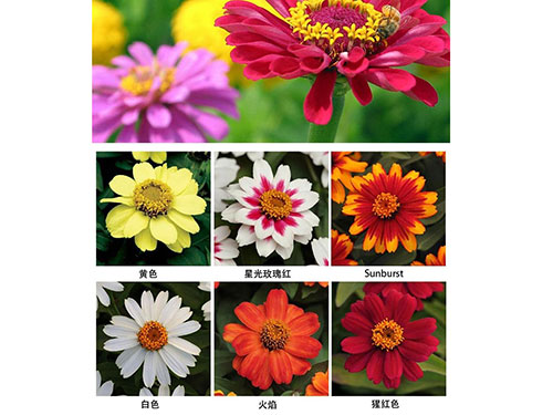 百日草,一年生草本植物。側枝呈杈狀分枝。夏秋開花,頭狀花序單生枝頂,花徑約10厘米,花瓣顏色多樣,花期長,花型變化多端,基本上都是重瓣種。